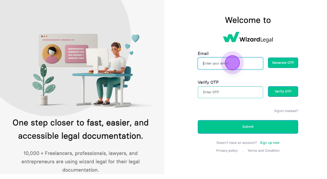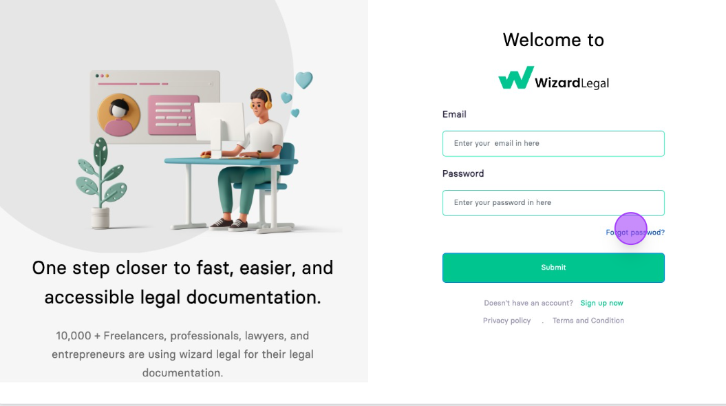 Navigate to https://www.wizardlegal.com/dashboard/login.html