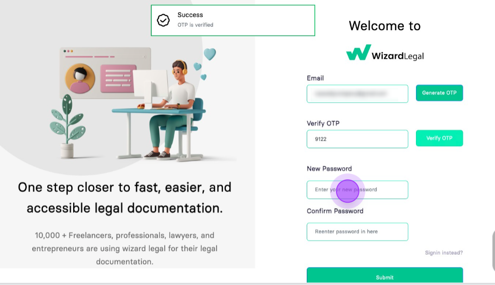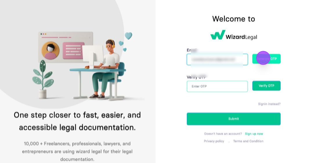 Click on "Generate OTP"